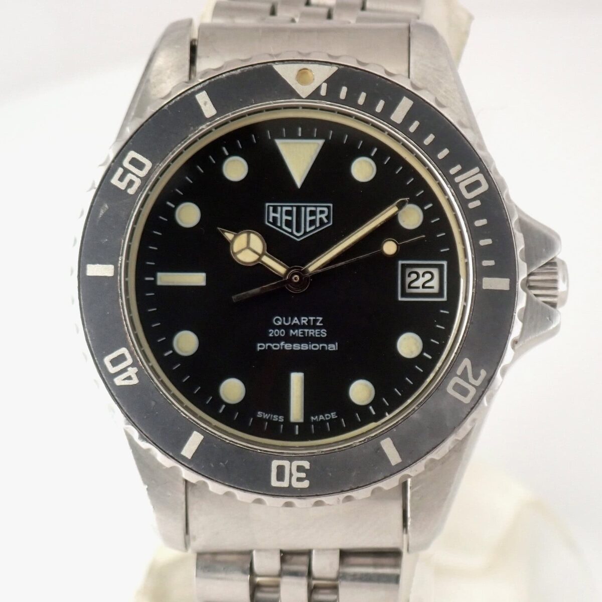タグ・ホイヤーへと移行する直前の時代を象徴するこのモデルは、ホイヤー社時代のクラシックなデザインを楽しめるだけでなく、ダイバーウォッチとしての高い性能を兼ね備えています。ロゴの変遷やデザインの細部に歴史を感じることができる、ヴィンテージウォッチ愛好家必見の一本です。